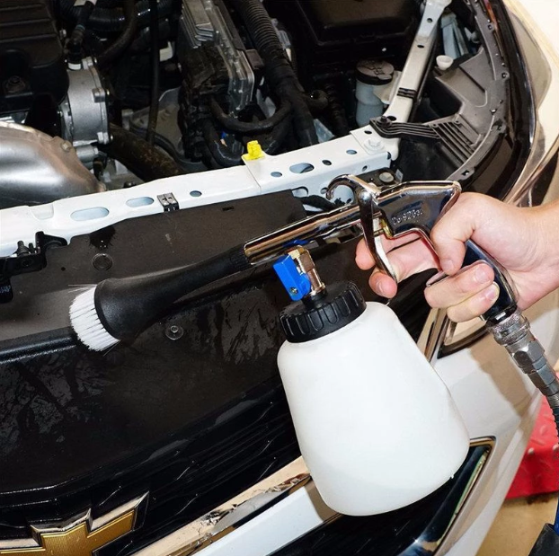 A Pistola de Limpeza Profissional é uma lavadora de alta pressão projetada para remover eficientemente manchas em uma variedade de superfícies, incluindo tecidos de flanela, couro, motores, pneus, plásticos e muito mais. Ideal para profissionais que buscam uma limpeza profunda e resultados impecáveis.